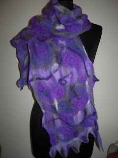 Er is nog een bolletje paarse spinwol over en daar ben ik nog druk mee aan het haken.Binnenkort volgen er foto's....klein beetje verklappen ...het wordt géén sjaal.